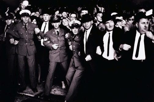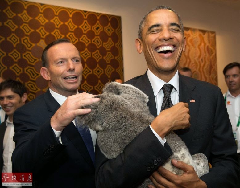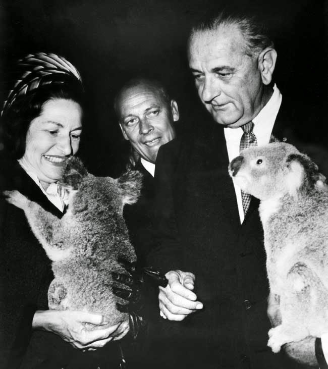 Recently the G20 Conference was held in Brisbane. Kilometres of steel barricades were erected and streets were closed off to protect visiting dignitaries from Brisbane's nasty protestors. I can only recall one arrest though - largely because most Brisbaneites treated the whole exercise as a big yawn. There was an indigenous protest march, but apart from the burning of an Australian national flag which attracted negative attention, the march was peaceful and uneventful. (Photos: news media)The early planning details released to the public concentrated so heavily on the security aspects of the G20 that Joe Average in Brisbane decided that the best course of action would be to pack up and leave town for a few days. The Gold Coast and Sunshine Coast accommodation and entertainment venues were even busier than their normal peak times of Christmas and Easter, while Brisbane businesses lamented the impact on their annual profits rather than "reaping the economic benefits" of the G20 as was promised by various politicians. Here is a photo showing a cyclist with the streets to himself, and below that a group of police protecting a deserted street.(Photos: news media)When the planners and organisers realised that Brisbane was going to be a ghost town they implored people not to stay away from the CBD but to carry on as normal. Too little, too late. Apart from Germany's Angela Merkel who visited Brisbane's famous pub nirvana, Caxton Street, all that the world's other leaders would have seen of Brisbane would have been a sterile cityscape with no inhabitants. Of course the news media were all over the visitors like a rash, especially when it came to reporting on the three top dogs: Obama of the USA, Putin of Russia and Cameron of the UK. The itineraries of these and other leaders were cloaked in mystery and their motorcades swept through deserted streets as if pursued by the devil himself.(Photo: news media)The last time a visiting US president came to town things were the same yet different. Lyndon Baines Johnson had a one-night stopover in Brisbane on Saturday 22 October 1966 as part of a whirlwind three-day visit to Australia. Johnson had served in Australia during WWII, and in hindsight the 1966 visit seems to have been somewhat of a series of meetings where Johnson was able to reminisce about those days and catch up with acquaintances of that time. Here is a WWII picture of Lyndon Johnson in his naval uniform.(Photo: http://www.lbjlib.utexas.edu)Whilst in Brisbane he and the first lady Lady Bird Johnson did find time to visit Lone Pine Koala Sanctuary, and the opportunity to cuddle a Koala was also on offer to the G20 visitors.(Photo: Queensland State Archives Item ID 1140028)(Photo: http://english.cntv.cn) Of course there were also overseas conflicts to muddy the waters. The G20 delegates had to tread warily around the wars in the Middle East and Ukraine, whilst the Vietnam problem was a major talking point for Lyndon Johnson. In Brisbane as in the other venues there were pockets of protestors decrying the war and conscription. (Photo: Graham Garner; http://espace.library.uq.edu.au)But largely people were curious about the man who had succeeded JFK and launched his own triple-letter identity into history. In those less security conscious times the police were involved more in crowd control than arrests. The photo below shows both uniformed and plain-clothed police with linked arms keeping the Brisbane crowd at bay.(Photo: David Moore; http://www.artgallery.nsw.gov.au)Huge crowds greeted Johnson when he arrived at Brisbane airport and at every part of his Brisbane itinerary. Despite the ever-present secret service detail, Johnson stopped the presidential limo on many occasions to interact with Australians - even at times rolling back the perspex roof to enable handshakes. His destination for the evening was Brisbane's top pub of the time, Lennons Hotel in George St, where his limo was surrounded as if he were a rock star or royalty. I was in the crowd outside Lennons that night, largely because I was just finishing my final year at high school and was out having some fun with my friends. The crowd was warm and well-behaved until Johnson's car arrived and then pandemonium ensued - in a good way. Click here to see a film of Johnson's visit from the National Film and Sound Archive of Australia. Unfortunately the Brisbane segment starts at 22:04 and is only a rather brief showing of arrival and departure together with some street scenes which seem to be around the Clayfield area. Australia's prime minister Harold Holt, fresh from his famous "All the way with LBJ" war cry, chaperoned the US president around in what was the first ever visit to our shores by a serving US president. Unfortunately Johnson was also to make the second visit to Australia by a serving US president when he returned in a little over twelve months time to attend the memorial service for Holt who drowned at Portsea while on his Christmas break. tff