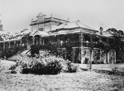 As a politician, McIlwraith was a liberal. He was intelligent and forthright to the point of being overbearing. He quickly set about reducing the deficit he inherited upon attaining the treasury and his engineering and railway background came to the fore in the debate about opening up the vast state of Queensland. He was also a strong supporter of federation. Space precludes articulating the full spectrum of McIlwraith's political career here - I recommend that you read the biography which is available at your local library. The financial crash of 1893 and the subsequent collapse of the Queensland National Bank in 1896 at a time when McIlwraith was in debt to the bank to the tune of more than £250,000 cast a shadow over his political career that remains to this day. (Photo: wikipedia)In 1880 McIlwraith bought a residence standing on substantial property of about 5 hectares (13 acres) at Toowong. He named the house Auchenflower after a family estate back in Scotland. The name stuck - even though the house no longer exists, the surrounding area became the suburb of Auchenflower. Here is a photograph of the house.(Photo: http://www.stignatiustoowong.org.au/documents/historyauchenflower.html)