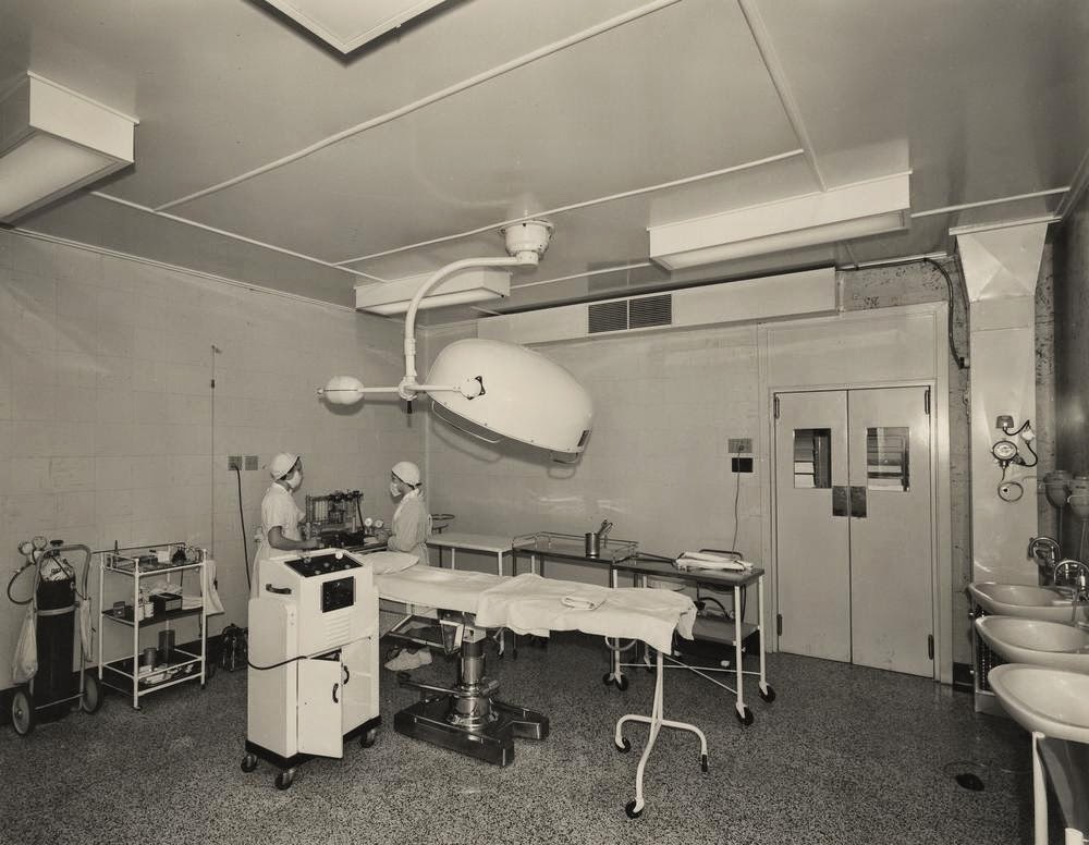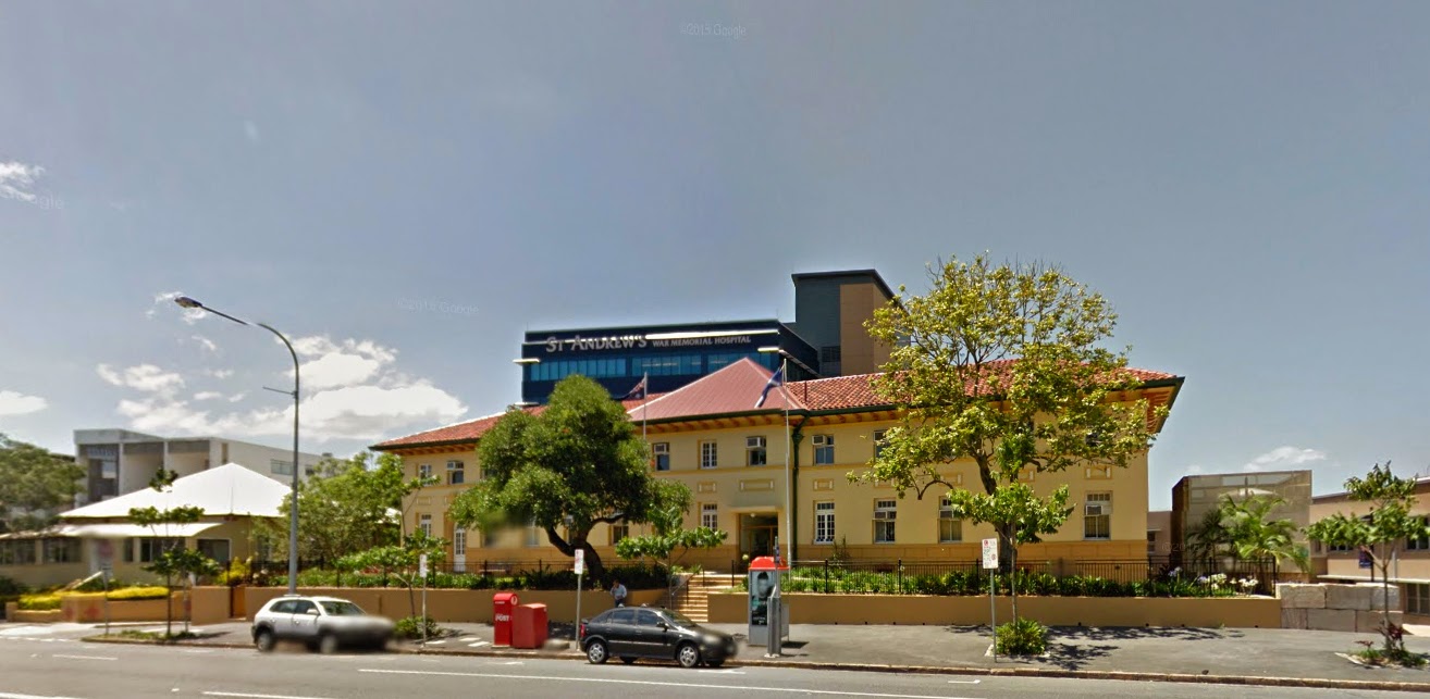 (Photo: SLQ 7979 St Helen's Methodist Hospital Photographs)And the following photo shows the same view after extensions and alterations to the building.(Photo: JOL 7979-0001-0008) This undated photograph shows an operating theatre at the hospital.(Photo: SLQ 7979 St Helen's Methodist Hospital Photographs)Dr Sandford Jackson died in 1938 and his estate continued to run St Helen's for another decade.In 1949 the hospital was acquired by the Methodist Church and became known as the StHelen's Methodist Hospital. In 1969 it was decided to move the hospital to the 'Moorlands' estate on Coronation Drive, Milton, to become part of the planned Wesley Hospital. The StHelen's site was eventually bought by the State Government for the building of a new State Library of Queensland.One of the buildings on the hospital campus has been named after Dr Ernest Sandford Jackson. Here is a 2009 photograph of the Wesley.(Photo: http://www.wesleyhandcentre.com.au)Click here for a Google Map.tff