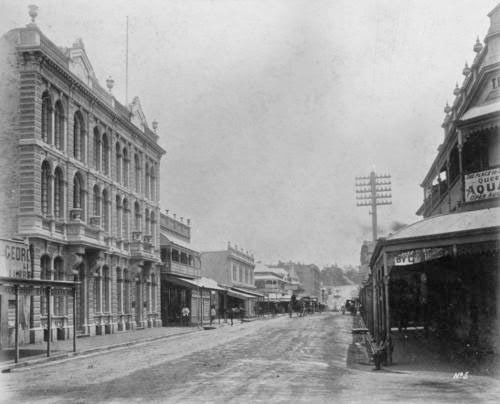 Pictured below is the warehouse of S Hoffnung & Co Ltd in Charlotte St. Of course it no longer exists. Despite being championed at times by the National Trust of Queensland it was demolished years ago - replaced in 1983 by a 15-storey glass and steel tower. The warehouse had been built in 1871 as the Brisbane offices of the wholesalers, Hoffnung's, that was formed in Sydney by Jewish immigrant Sigmond Hoffnung and grew to become a national business. (Photo: https://www.facebook.com/Lost.Brisbane)The photo above is from 1980, while the one below is taken from the other direction during the 1893 flood. (Photo: fryer-ref_20150315)So, redevelopment has achieved what flood and even fire could not. On 14 April 1902 the top three storeys of the building were damaged in a furious fire, one of the biggest ever in the city. However our story today concerns not the fire itself but the aftermath.After the fire was extinguished and the damage was being assessed it came to light that someone was trying to sell about 50lb (almost 23kg) of tobacco in northern Queensland. The rumour was that the vendors were Brisbane firemen. Investigations proceeded and it was discovered that the tobacco had most likely come from the Hoffnung's warehouse.The mayor of Brisbane at the time was Mr Leslie Corrie, and he was also the chairman of the Metropolitan Fire Brigade Board. He called two of the firemen to a meeting and questioned them about the tobacco. Eventually the fireys admitted having been involved in the theft and although they indicated that others were also involved they refused to name them. This left the mayor in a rather sticky situation. The theft was undeniably a very serious matter and in the normal course of employment it should have resulted in dismissal of the offenders. Mayor Corrie, however, took a pragmatic view and severely censured the men while docking them a week's wages.This is where Thomas Proe comes to light. A council alderman and former mayor, he was also a member of the Fire Brigade Board and felt that the punishment was insufficient, promptly protesting by tendering a letter of resignation from the Fire Brigade Board. Here is a picture of the man.(Photo: BCC-B120-33442)At a later meeting Mayor Corrie explained his decision. At the time the fire brigade was already understaffed and hiring a large number of new recruits would be impractical because of the long hours of training necessary to produce an qualified firefighter. The fire at Hoffnungs was itself an indication of how important it was for Brisbane to have a fully capable fire brigade. At this meeting Thomas Proe was encouraged to withdraw his resignation. He did so.In those days the position of mayor was rotated amongst the elected aldermen, and Thomas Proe later became mayor of Brisbane again. Here he is pictured in his mayoral robes. (Photo: BCC-B120-32306)What more of Thomas Proe? A Lancastrian born in 1852, he came to Queensland in 1876, married in 1881 and had seven children. He was initially a trained engineer, but became a publican, owning at different times a couple of Fortitude Valley hotels - the Osbourne and the Royal George.He is remembered by the naming of Proe St in Fortitude Valley.Click here for a Google Map.tff
