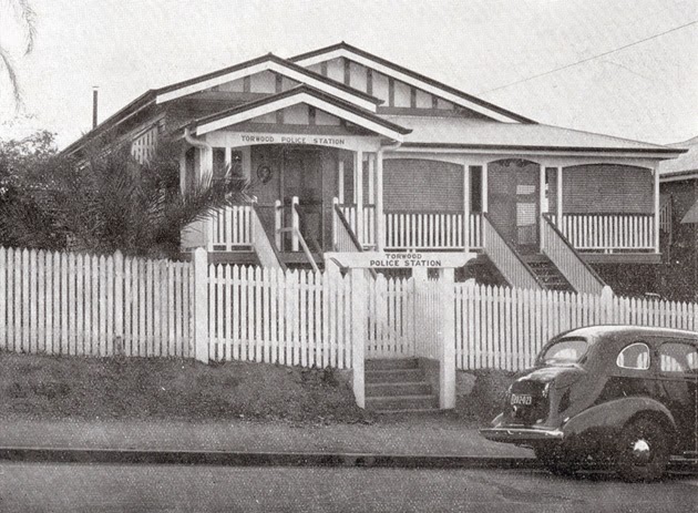 On the way towards the city, as you ease down the long hill before the old Milton tennis centre, she stands there, still and silent. On the verandah of a triple-gabled Queenslander is a nun, waving at the passing traffic. She is wearing a dark nun's habit with a touch of pure white wimple showing around a rather plastic face. Plastic face? Yes, it is someone having a leg-pull. Not a botoxed nun, but a mannequin dressed as a nun to brighten a commuter's day. She has even made it onto Google Maps - look below - you can just make her out above the red door behind the glass.(Photo: google.com)Recently I was browsing through some archived photographs at the BCC Brisbane Images site when I came across a structure that looked familiar to me. I checked the information filed with the image which told me that the building was the Torwood police station, photographed in 1935. This is the photo. (BCC-B120-80976) 1935It took me a while to place the building because no address was provided. But the triple gables and the two separate staircases apparent in the old image are still features of this nun's house on Milton Rd. It was a police station that opened in 1898 and operated through to 1992 before being decommissioned. It was purpose-built as a police station and I assume that one staircase led to the official side of the building while the other led to the residence of the officer who probably lived on the premises. Here is a more complete photo from Google. (Photo: google.com)And another photo, this time from BCC where it is listed on their heritage register. The suburb of Torwood that this police station served no longer exists, though - it has been amalgamated into Auchenflower.(BCC 2011)And now, as I research the story, I find that the nun is famous. Here is a piece from the Brisbane Times that tells us that she has been delighting commuters for years and often reflects topical stories such as the reminder to vote in an election. (Photo: Michelle Smith via brisbanetimes.com.au) If you Google "nun on milton road" you will find further evidence of her sense of fun - for example she donned a pair of floaties in case the 2011 flood reached her door! Hooray for you, Sister Mary Angeline!Click here for a Google Map.tff