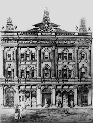 Around this time he created Stombuco's impressive Her Majesty's Opera House in Queen St, shown in the drawing below. Regrettably this ornate building was demolished during the Joh Bjelke-Petersen era of destruction.