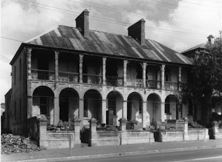 Also of note were the terrace houses situated on Petrie Terrace that came to be home for the O'Keeffe family and now are a Brisbane landmark close to the Normanby Fiveways. They are pictured here in 1977, prior to a restoration.
