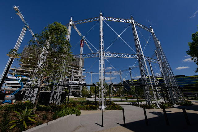We previously looked at this site when it was first being redeveloped. All of that reclamation work has finished, but there are still cranes and workmen there constructing apartment buildings, office towers and shopping complexes.